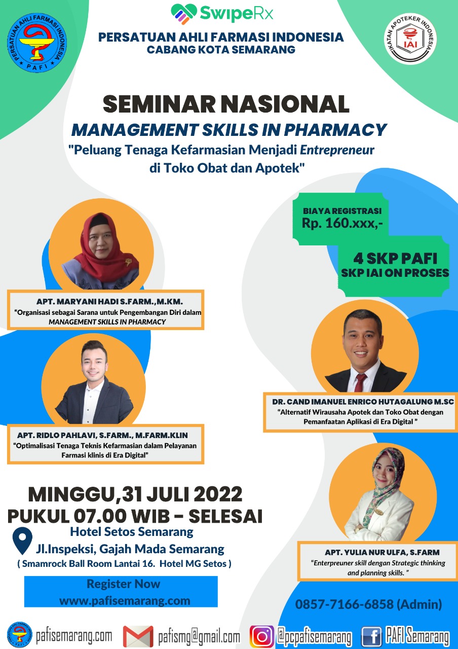 Bagi anggota PC PAFI Kota Semarang silahkan daftar melalui akun pafisemarang.com pilih menu daftar seminar